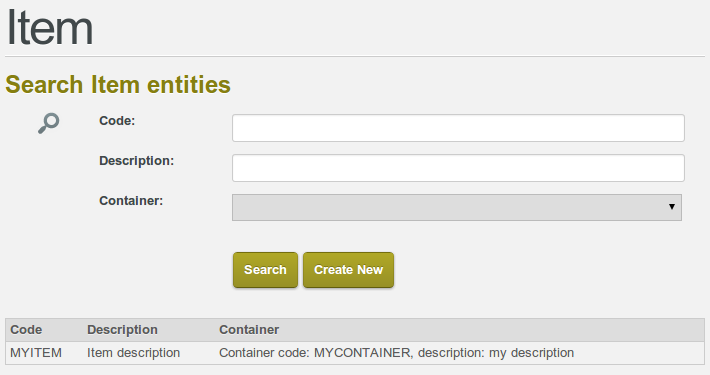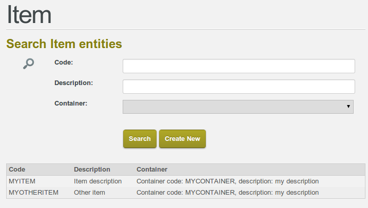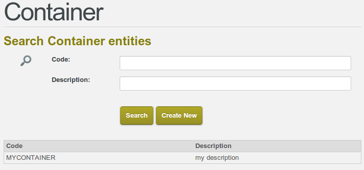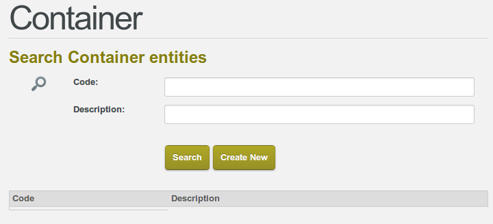 The home page of Container is pretty much the same as in sample 01 with a filter section and a results table.