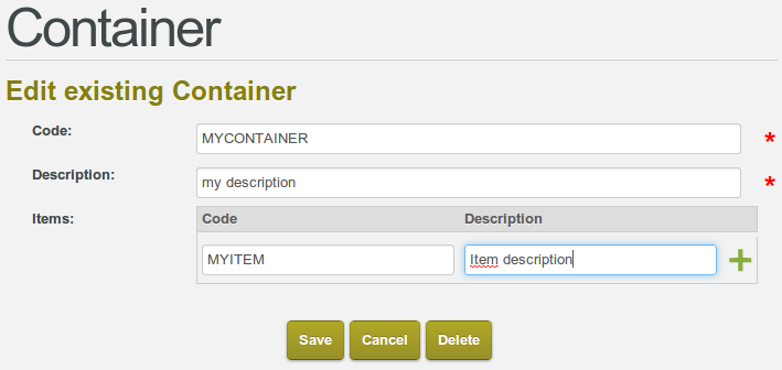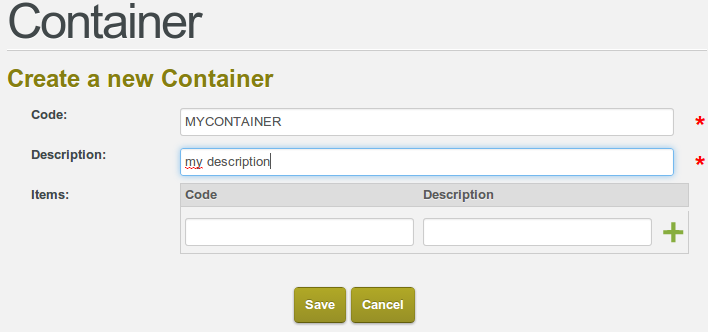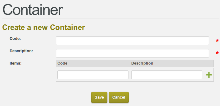 On creating a new Container we start to see differences with a specialized section that allows to register items.